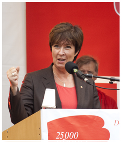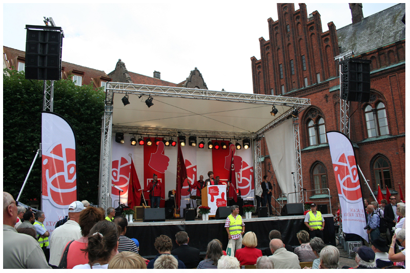Det var scenpremiär under Mona Sahlins tal 22 aug i Landskrona. |