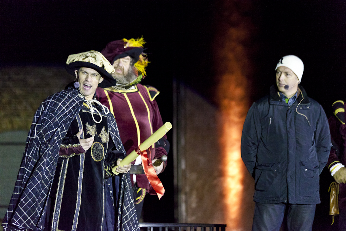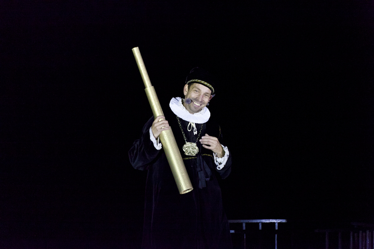 Astronomen Tycho Brahe berättar om sina fester på slottet. Spelades av Anders Kungsman.