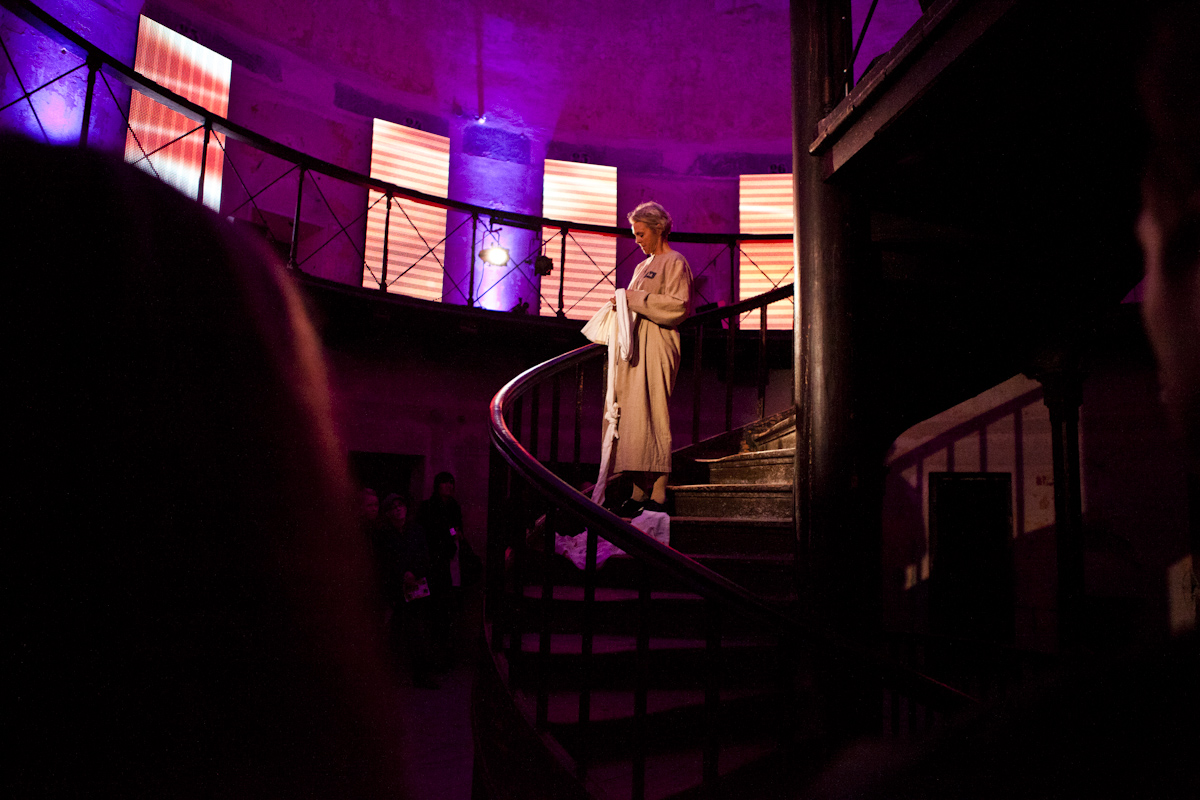 Inne i fängelsetornet där Eva Ekengren gestaltar Hilda Nilsson som mördade sina fosterbarn.